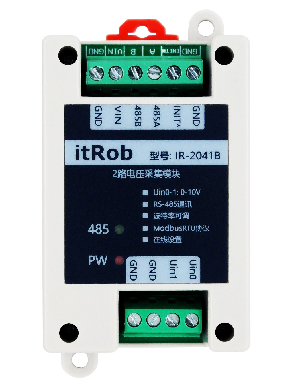 IR-2041B是一款可测量2路电压(0~10V)信号的经济型电压测量与采集模块。